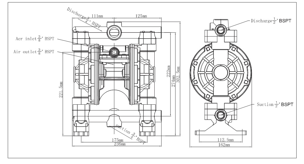 AODD Pump Key Features ·Run Dry ·Self Priming Function ·High Pressure to 8.4bar ·Temperature to 176℃ Main Applications of Air Diaphragm Pump Shipping Industry: -Pumping a variety of sewage, oil for oil tankers, barges, etc. Paint Industry: -Pumping a variety of paints, resin, etc. Mining Industry: -After oil well drilling, pumping sediment, pumping water or mud out of mines, trenches, and tunnels, mineral processing, slag, cement grout, mortar, etc Environmental Protection & Wastewater Treatment Industry: -Pumping a variety of sewage, mud, and slurry. AOK air operated diaphragm pump also can be matched with plate-and-frame filter press for sewage treatment. |